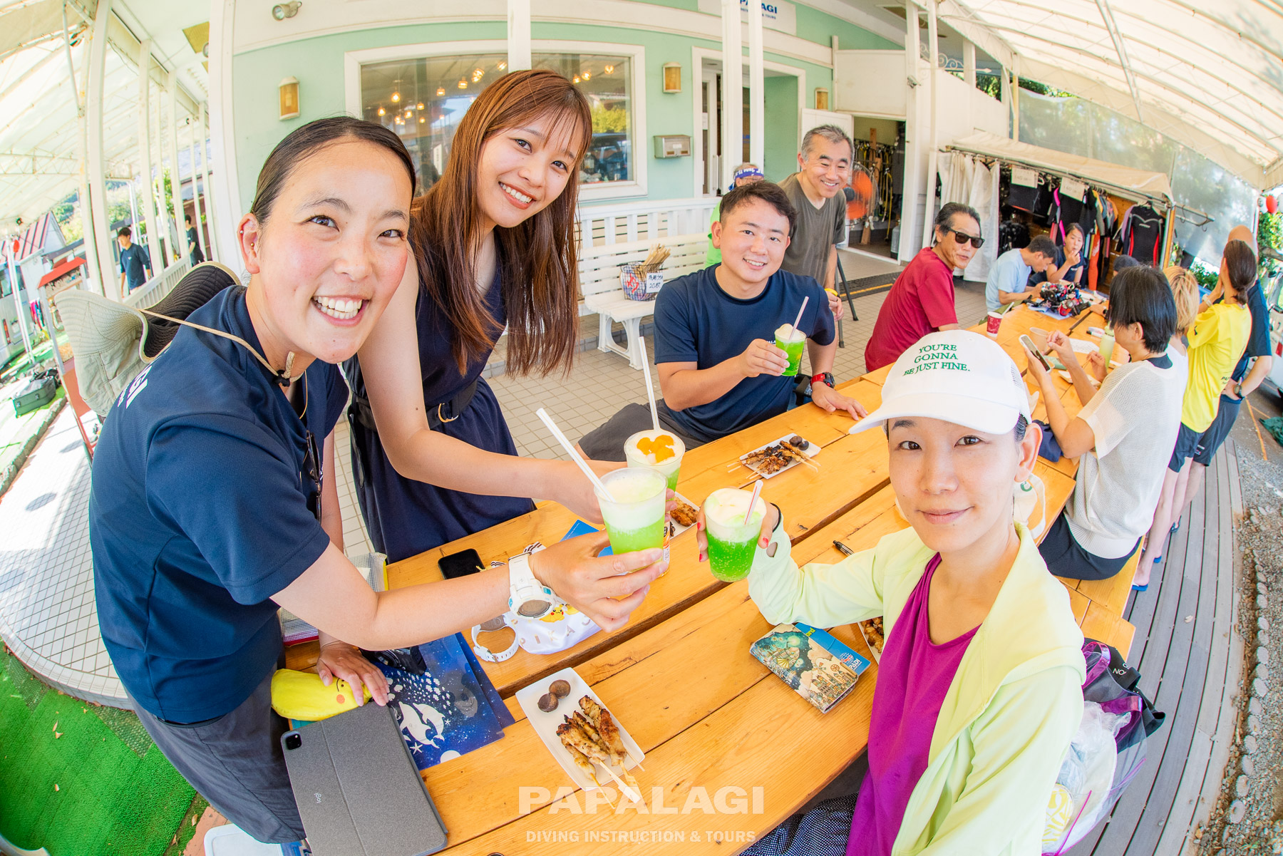 平日はPPB講習を担当し、浮力マスターした講習生たちとホバリングで記念撮影!